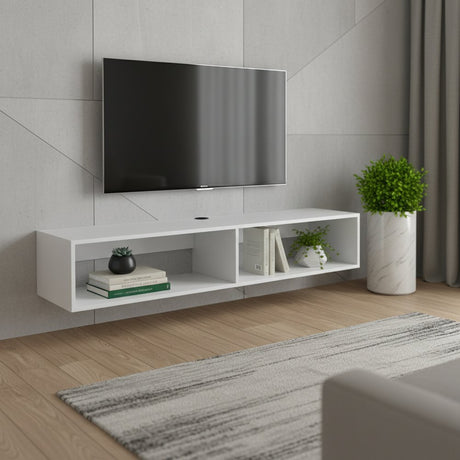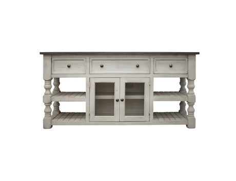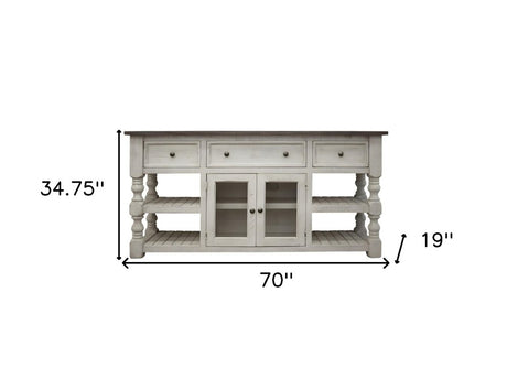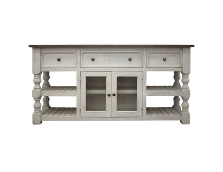 70" Ivory Solid Wood Open shelving Distressed TV Stand
