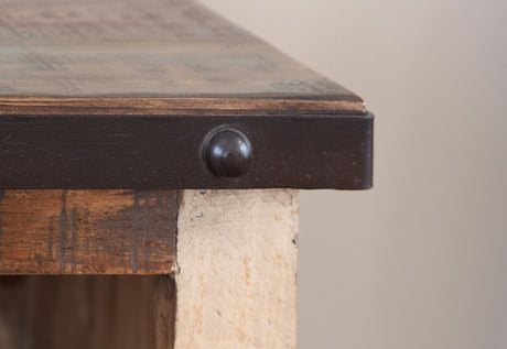 93" Brown Solid Wood Cabinet Enclosed Storage Distressed TV Stand