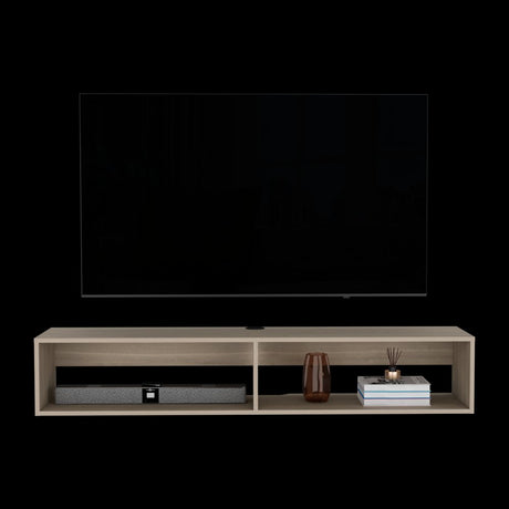 70" Light Gray Solid Wood Open shelving Distressed TV Stand