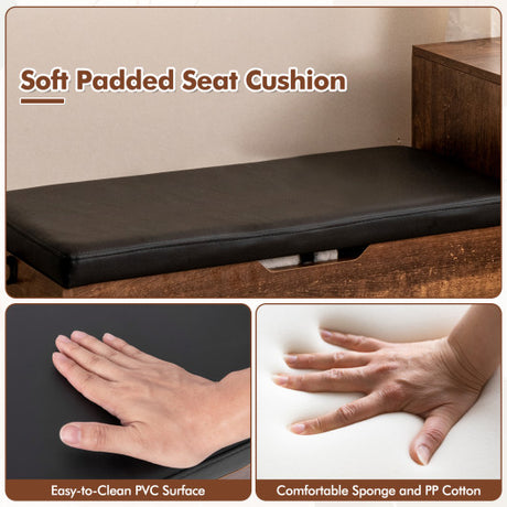 Entryway Bench with Flip Top Box and 2 Door Cabinets for Entryway-Rustic Brown