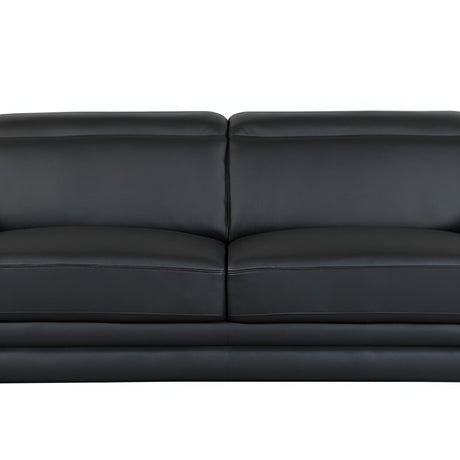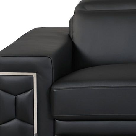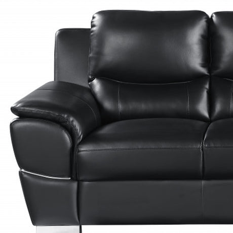 85" Black Leather Sofa With Silver Legs