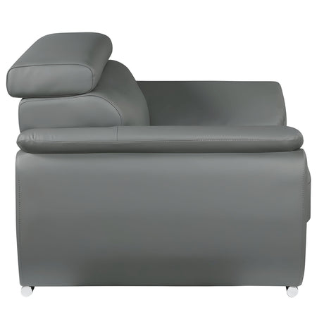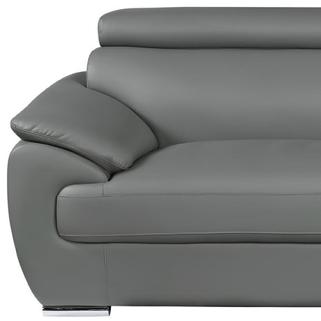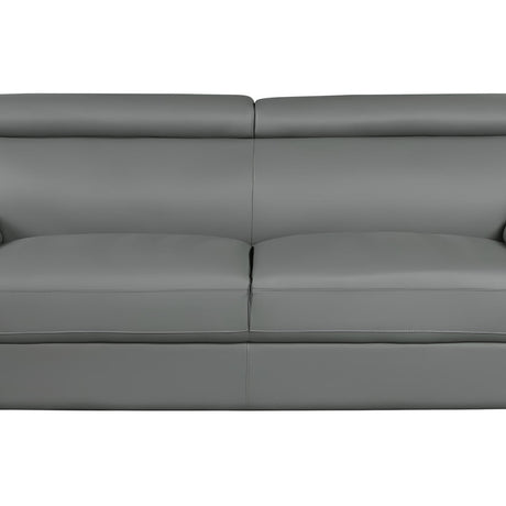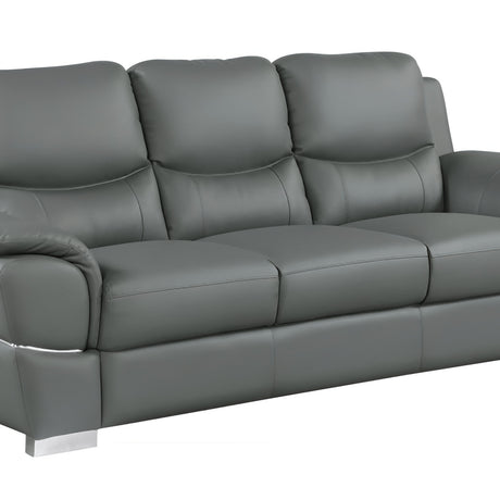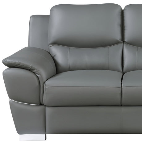 85" Gray Leather Sofa With Silver Legs