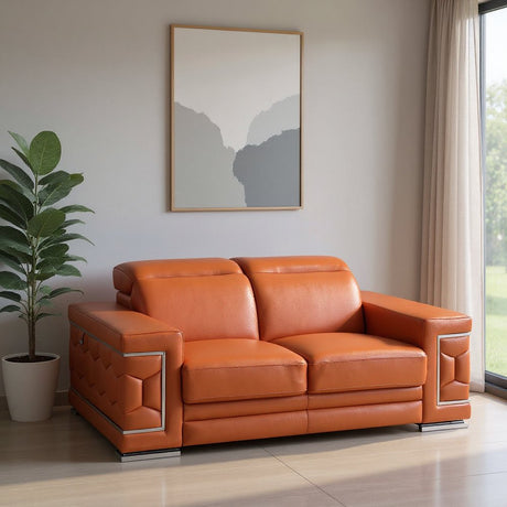 71" Camel And Silver Genuine Leather Love Seat