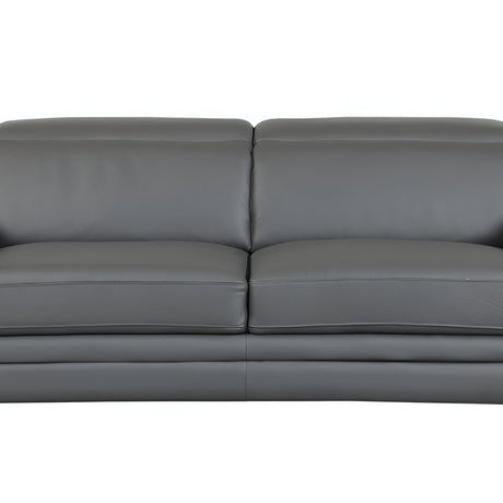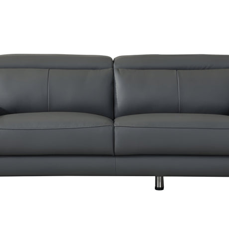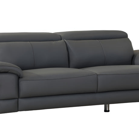 87" Dark Gray Italian Leather Sofa With Silver Legs