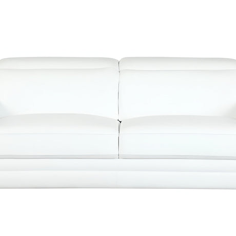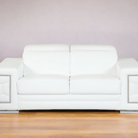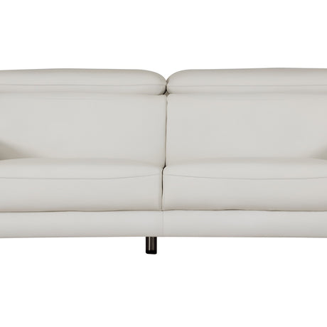 71" White Italian Leather Sofa With Silver Legs