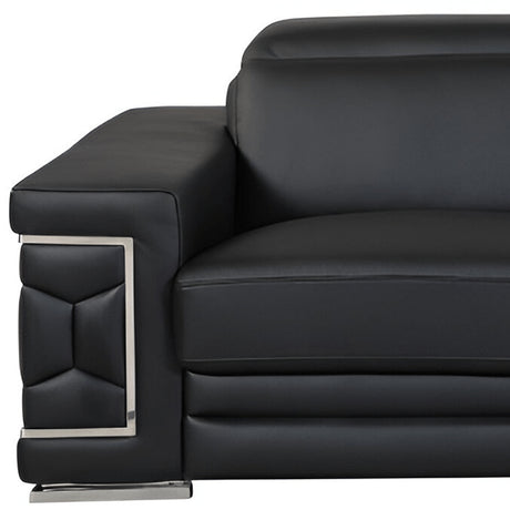 89" Black Italian Leather Sofa With Silver Legs