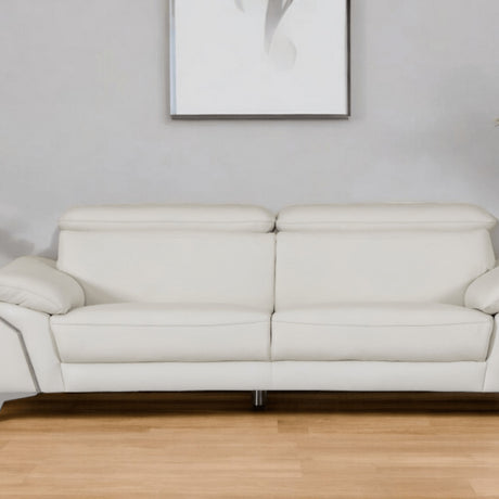 85" White Leather Sofa With Silver Legs