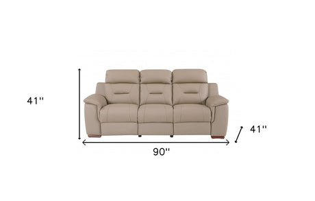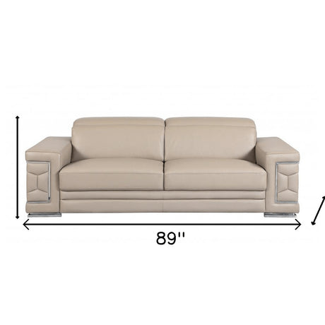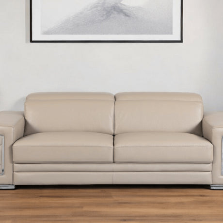 89" Beige Italian Leather Sofa With Silver Legs