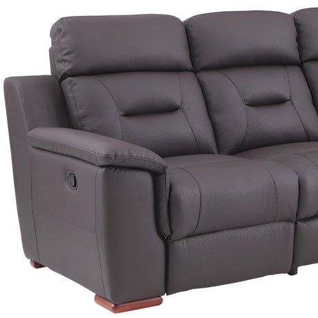 90" Gray Faux Leather Reclining Sofa With Brown Legs