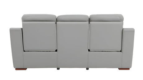 90" Light Gray Italian Leather Sofa With Silver Legs