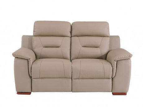 67" Beige And Brown Faux Leather Manual Reclining Loveseat