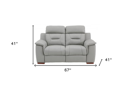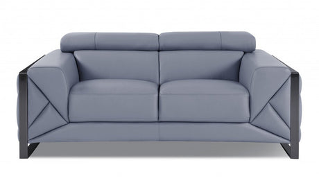 73" Light Gray And Silver Genuine Leather Loveseat