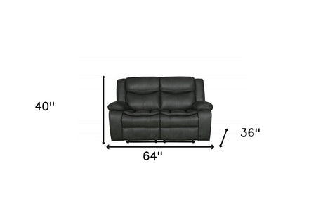 64" Gray Faux Leather Manual Reclining Love Seat