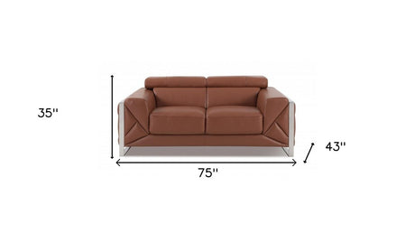 75" Camel And Silver Italian Leather Loveseat