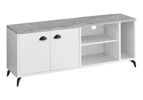 64" White Mahogany Solid Wood Enclosed and Open Storage TV Stand