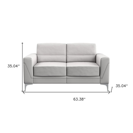89" Dark Gray Italian Leather Sofa With Silver Legs