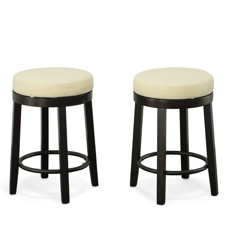 Set of Two 30" Cream and Espresso Faux Leather and Solid Wood Backless Bar Height Swivel Bar Chairs