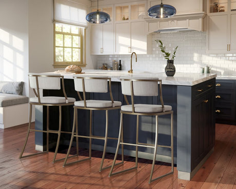 30" Beige And Antiqued Brass Steel Low Back Bar Height Bar Chair
