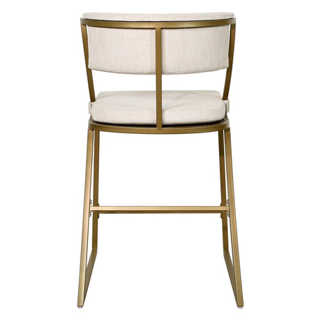25" Beige And Antiqued Brass Steel Low Back Counter Height Bar Chair