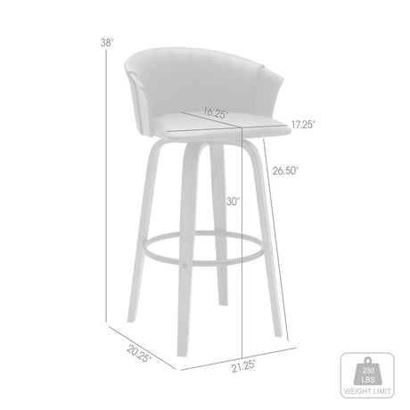 30" Cream And Wood Brown Faux Leather Swivel Bar Height Bar Chair