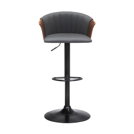 Gray and Black Faux Leather with Metal Swivel Adjustable Height Bar Chair