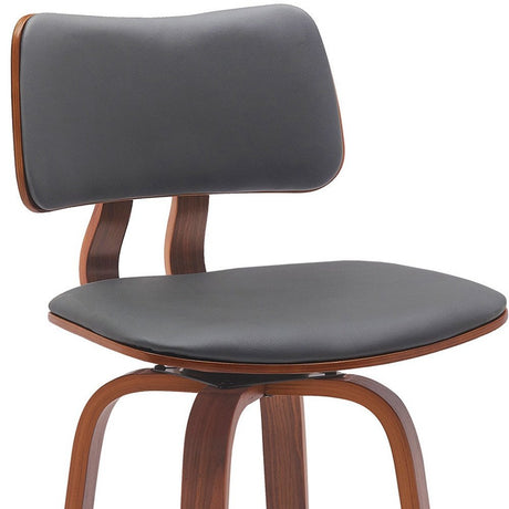 26" Gray and Wood Brown Faux Leather with Solid Wood Swivel Counter Height Bar Chair