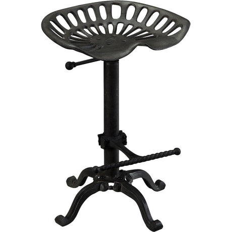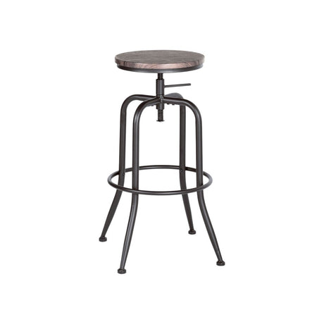 Chestnut And Black Solid Wood And Steel Adjustable Height Swivel Bar Chair