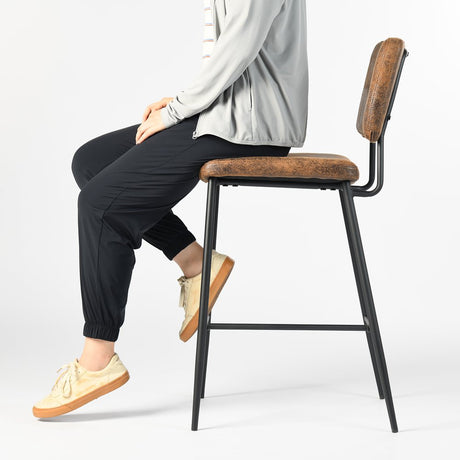 Set of Two 27" Brown And Black Faux Leather And Steel Low Back Counter Height Bar Chairs
