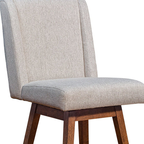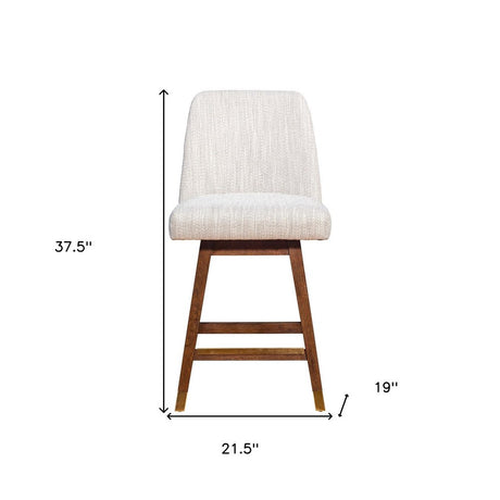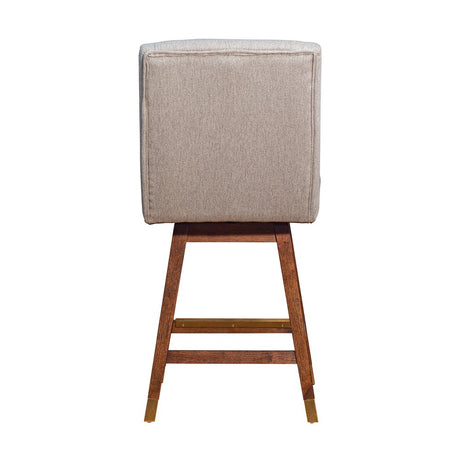 26" Beige and Brown Fabric and Solid Wood Counter Height Swivel Bar Chair
