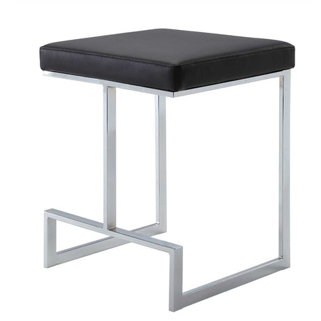 24" Black And Silver Faux Leather And Steel Backless Counter Height Bar Chair