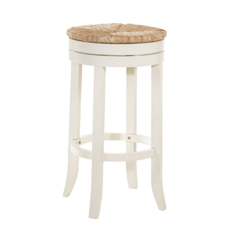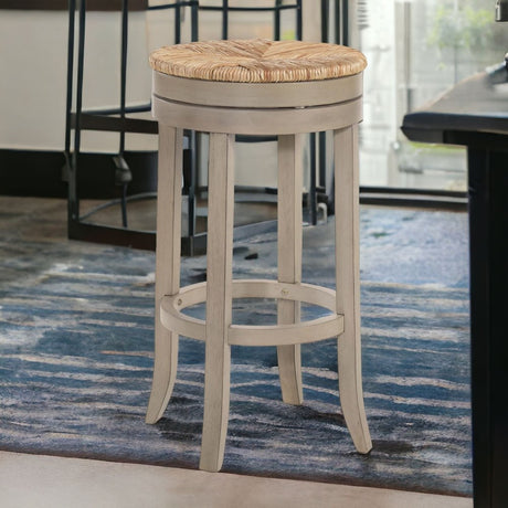 30" Natural And Antiqued White Solid Wood Swivel Backless Bar Height Bar Chair