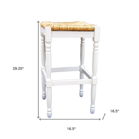 29" Natural And Antiqued White Solid Wood Backless Bar Height Bar Chair