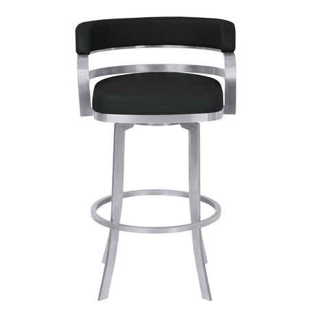 26" Black And Silver Faux Leather And Iron Swivel Low Back Counter Height Bar Chair