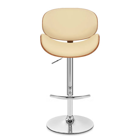 Cream and Silver Faux Leather and Solid Wood Low Back Adjustable Height Swivel Bar Chair