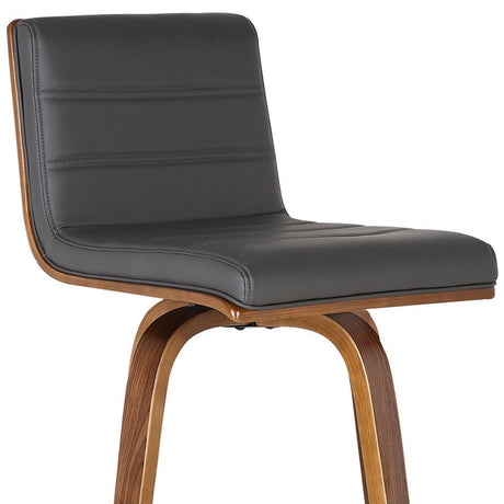 31" Onyx And Gray Faux Leather And Solid Wood Swivel Bar Height Bar Chair