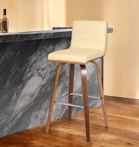 24" Cream And Silver Faux Leather And Solid Wood Swivel Low Back Adjustable Height Bar Chair