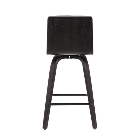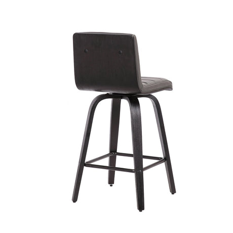 26" Black And Dark Gray Faux Leather And Wood Swivel Low Back Counter Height Bar Chair