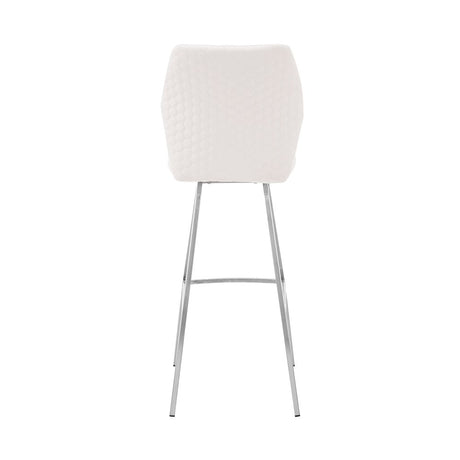 30" White And Silver Faux Leather And Iron Bar Height Bar Chair