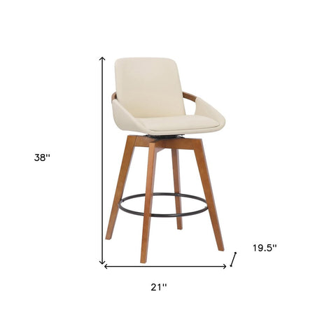26" Cream And Brown Faux Leather And Iron Swivel Low Back Counter Height Bar Chair