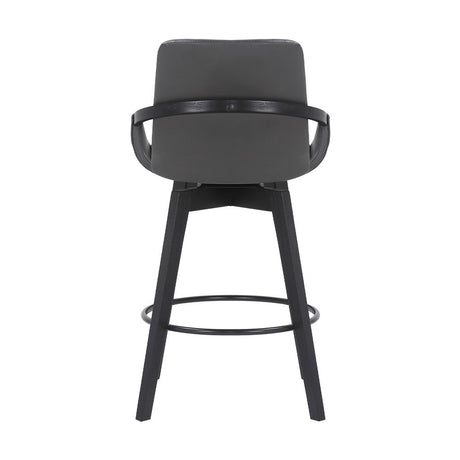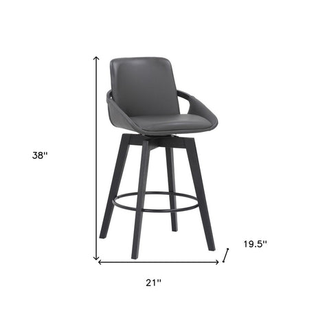 26" Gray and Black Faux Leather and Iron Counter Height Swivel Bar Chair