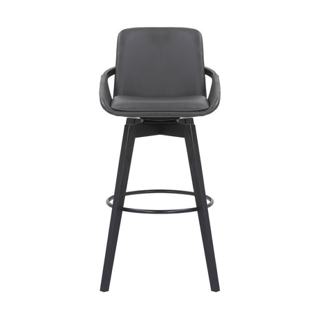 30" Gray and Black Faux Leather and Iron Bar Height Swivel Bar Chair