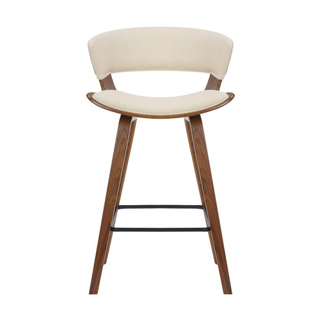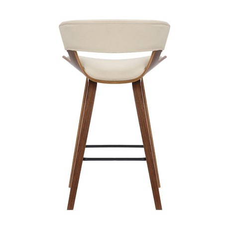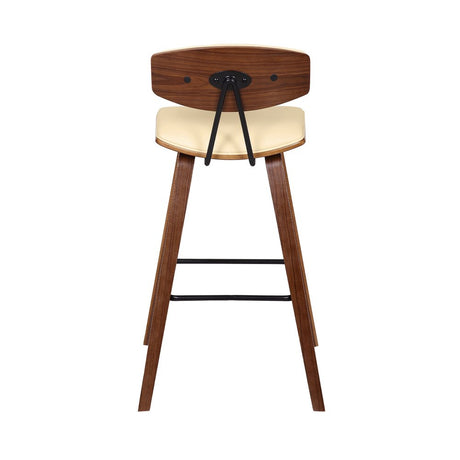 29" Cream and Brown Faux Leather and Iron Low Back Bar Height Bar Chair