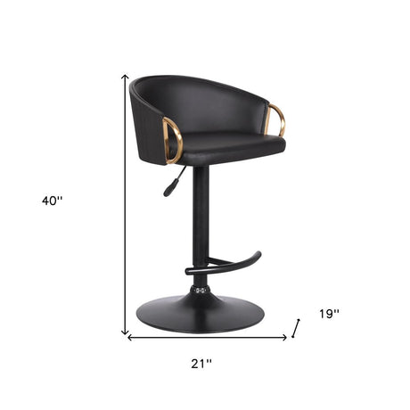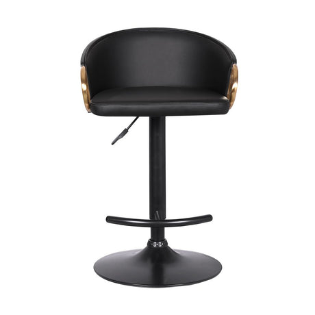 Black Faux Leather and Iron Low Back Adjustable Height Swivel Bar Chair