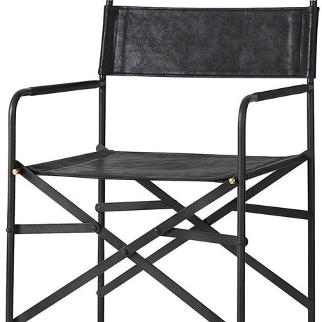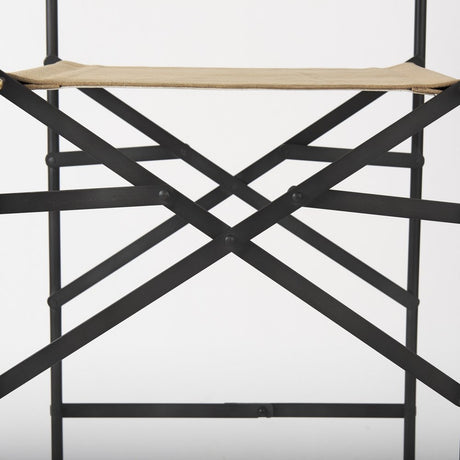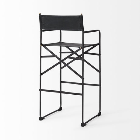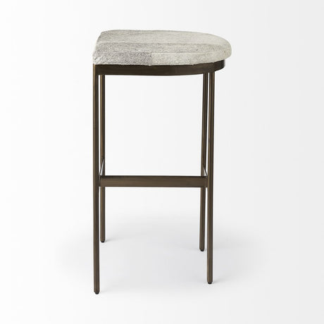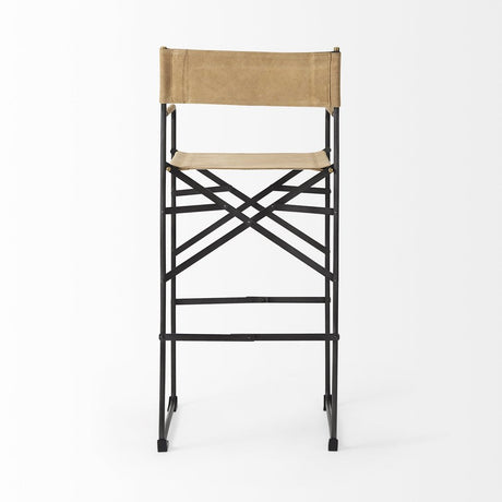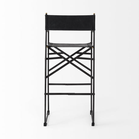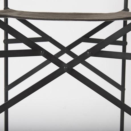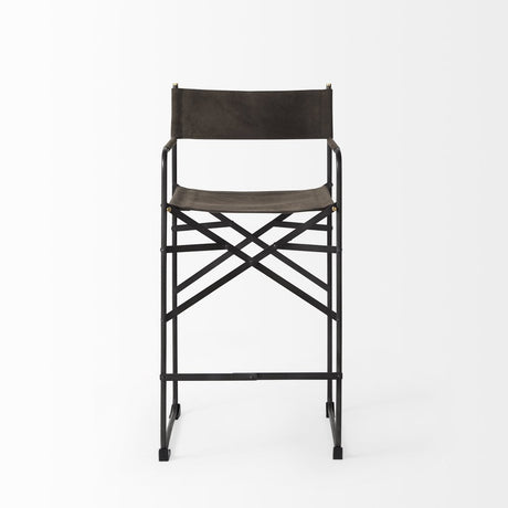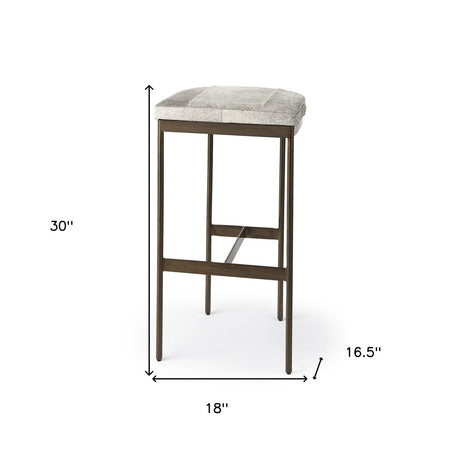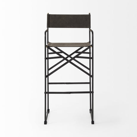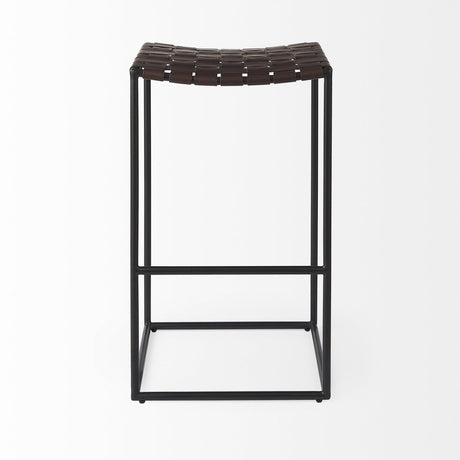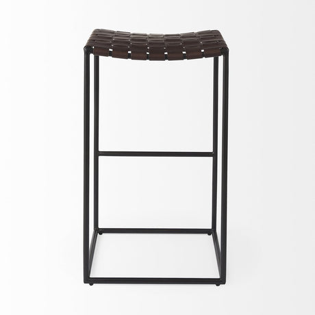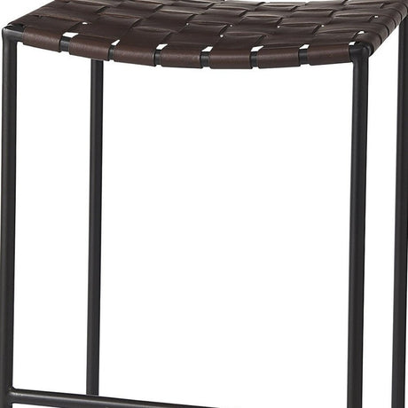 30" Brown And Black Leather And Iron Backless Bar Height Bar Chair