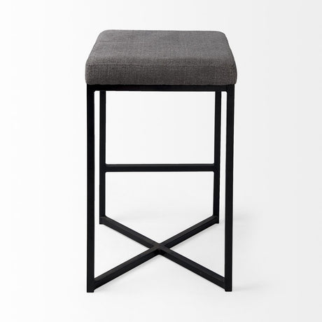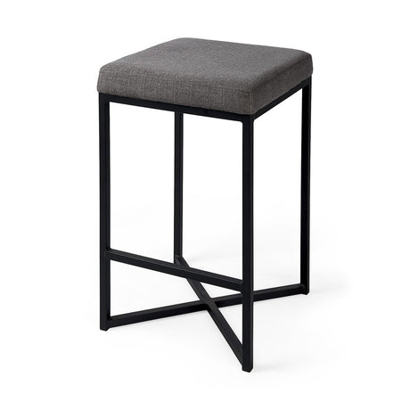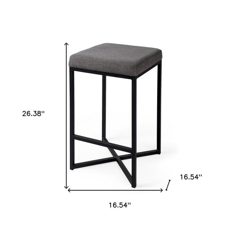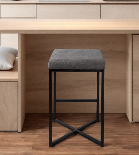 26" Gray and Black Fabric and Metal Backless Counter Height Bar Chair