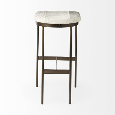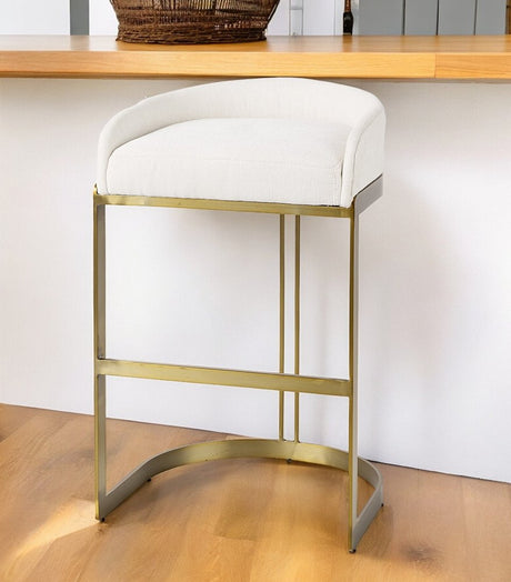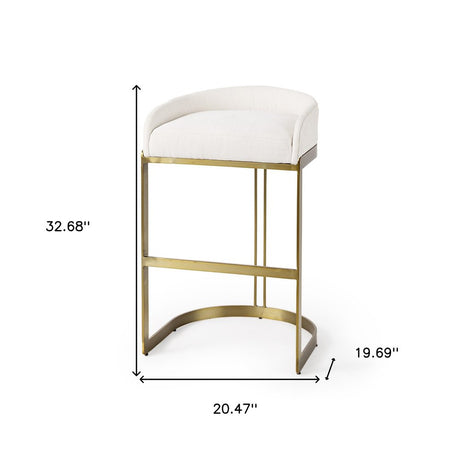 35" White and Gold Fabric and Metal Low Back Bar Chair
