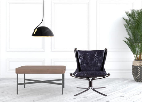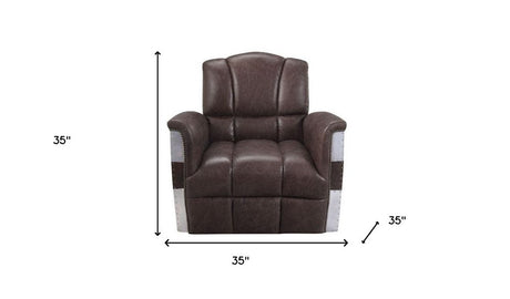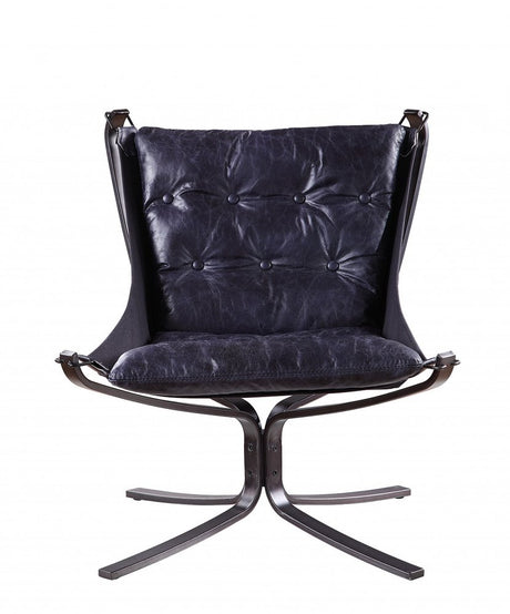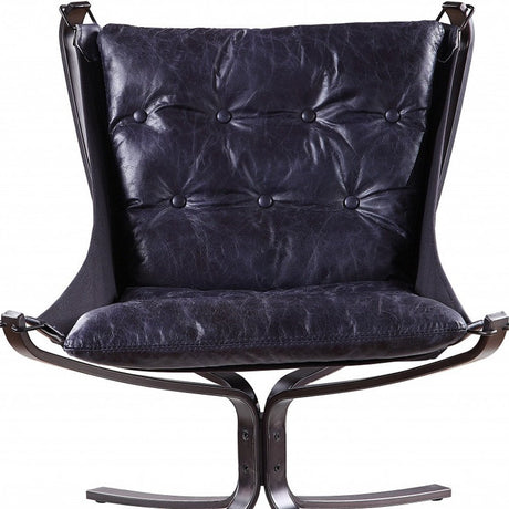 30" Coffee and Steel Blue Top Grain Leather Tufted Lounge Chair