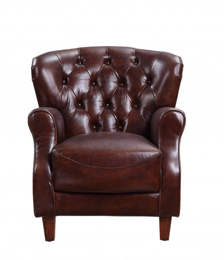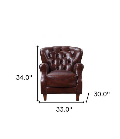 30" Brown and Steel Blue Top Grain Leather Tufted Club Chair