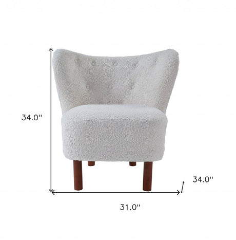 31" White and Brown Sherpa Polka Dots Wingback Chair