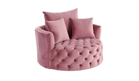 43" Pink Velvet Tufted Swivel Barrel Chair And Toss Pillows